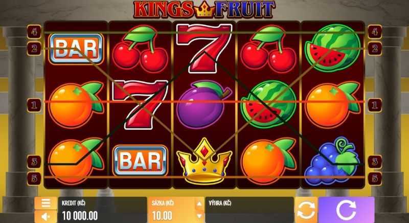 Kings Fruit features a straightforward structure with only 5 paylines. This limited number of paylines indicates that winning combinations may not occur as frequently as in slots with more complex payline structures. Players can expect larger win amounts on individual lines, but fewer opportunities for small wins across multiple lines.