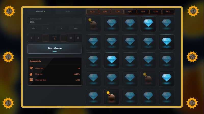 The Mines slot is structured with a 5x5 grid. This configuration may suggest a gameplay mechanic where players select positions on the grid to uncover potential wins or “mines”. The lack of defined paylines indicates that the slots may be structured to reward players based on uncovering combinations or multipliers as opposed to traditional linear lines.
