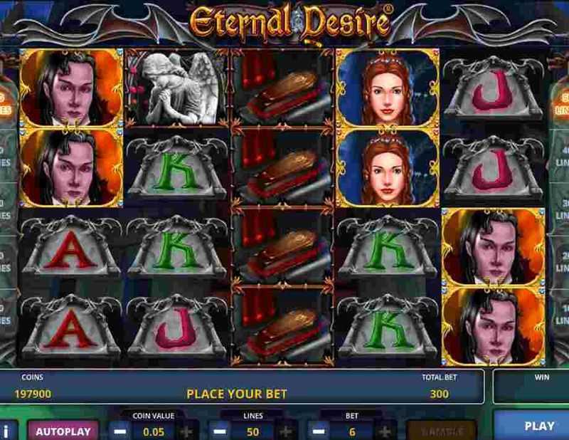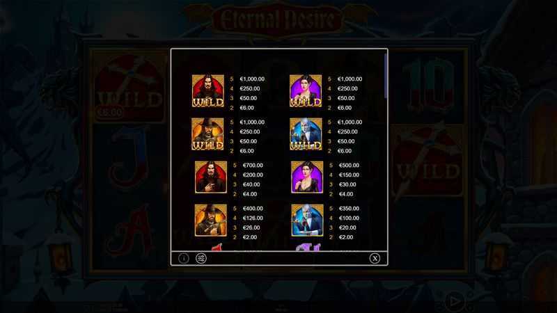 With its medium volatility rating, "Eternal Desire" offers a balance between smaller, more frequent wins and the potential for less frequent, larger payouts. This structure generally caters to a broad spectrum of players, from casual gamers to those seeking to win moderately. The 50 paylines also suggest that players might experience consistent payouts, making the game less volatile than others that could have wider gaps between winning spins.